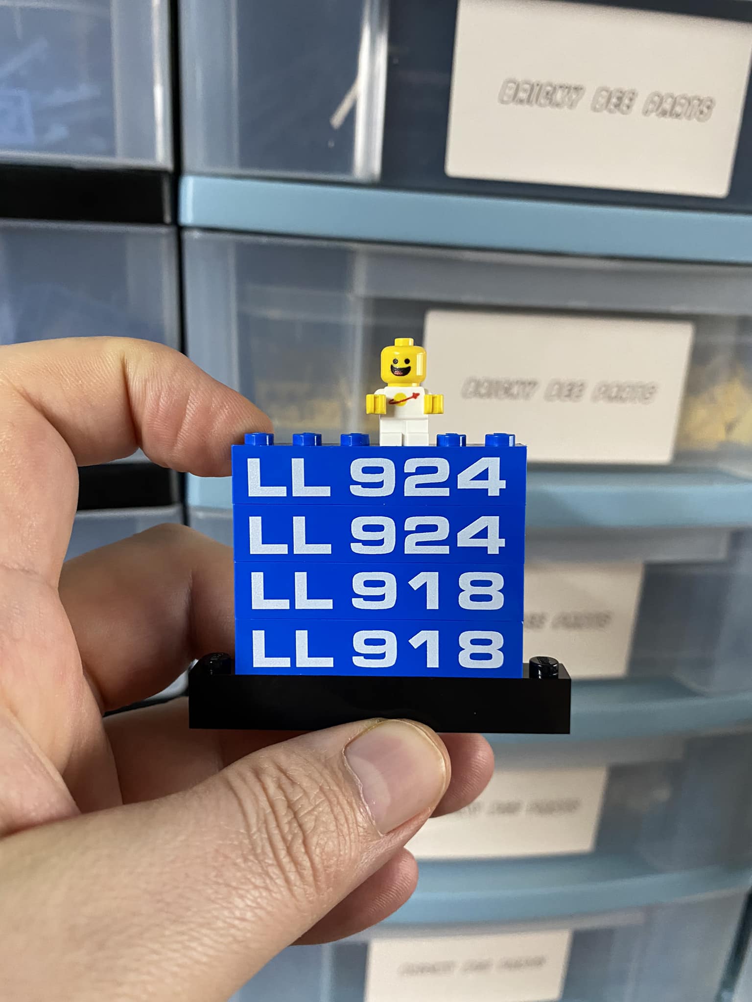 This is a package of 4 printed 1x6 blue bricks, 2x924 and 2x918
